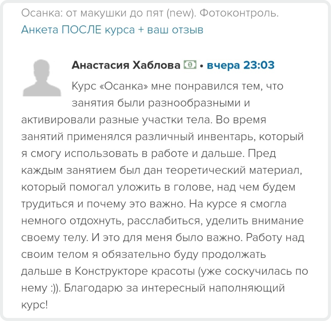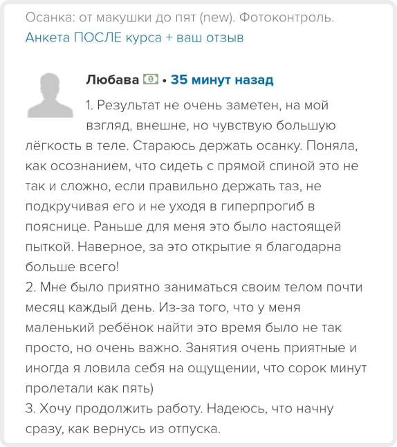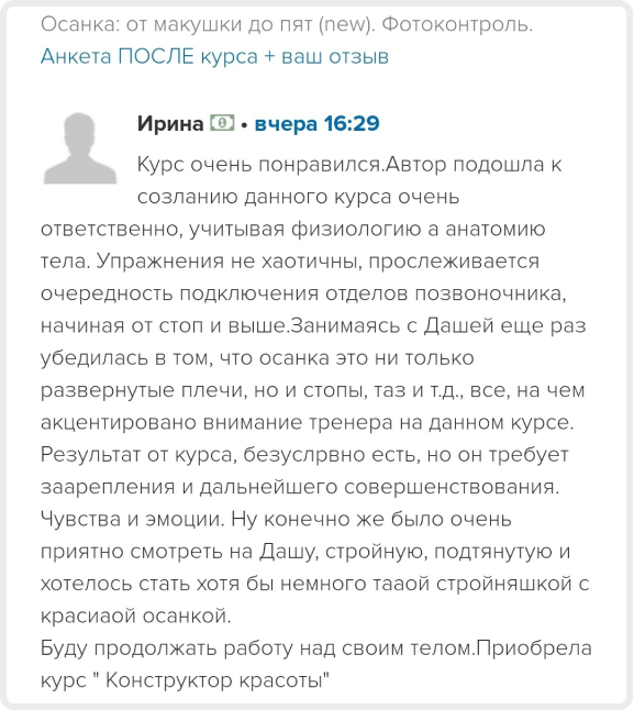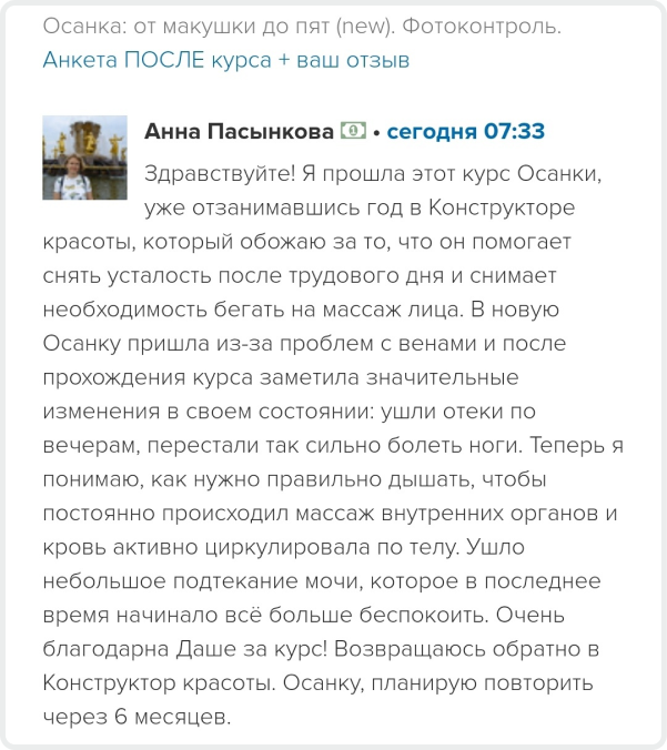 Здесь вы принимаете решение - продолжать вам оздоравливать и омолаживать ваше тело и лицо вместе со мной в «Конструкторе Красоты» или ограничиться полученными результатами. Но, скорее всего, вы полюбите свое легкое тело, что вам не захочется останавливаться!